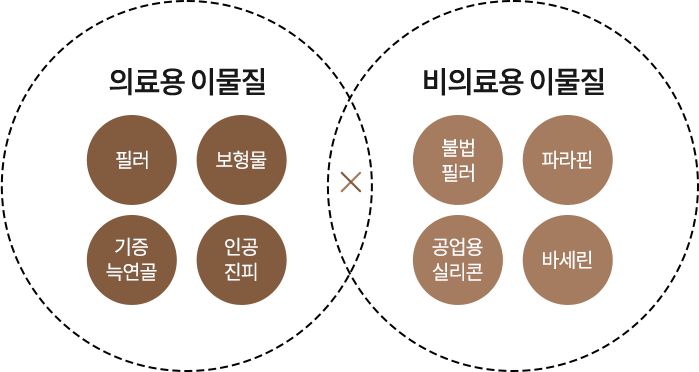 얼굴에 주입 또는 삽입된 이물질이